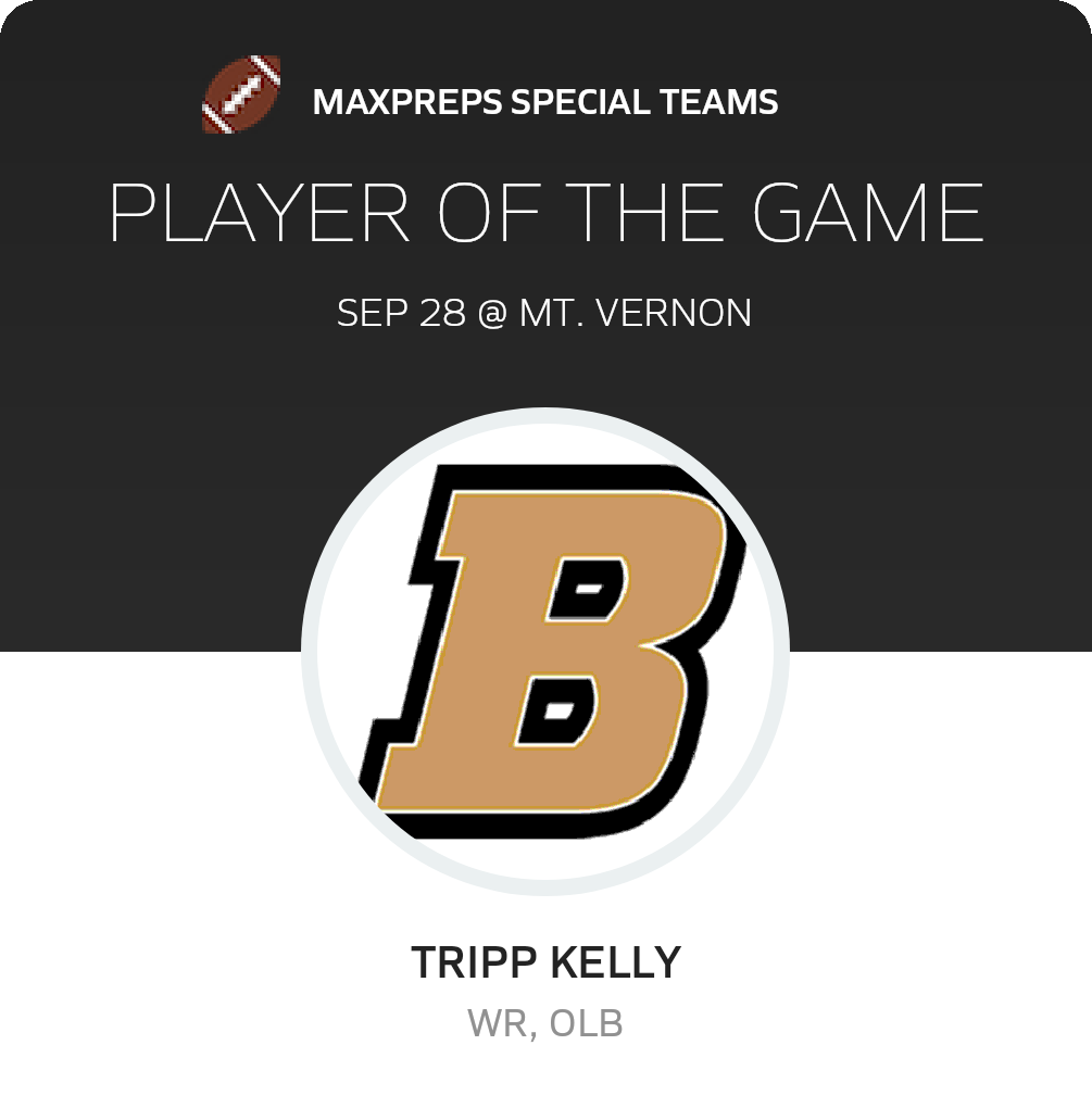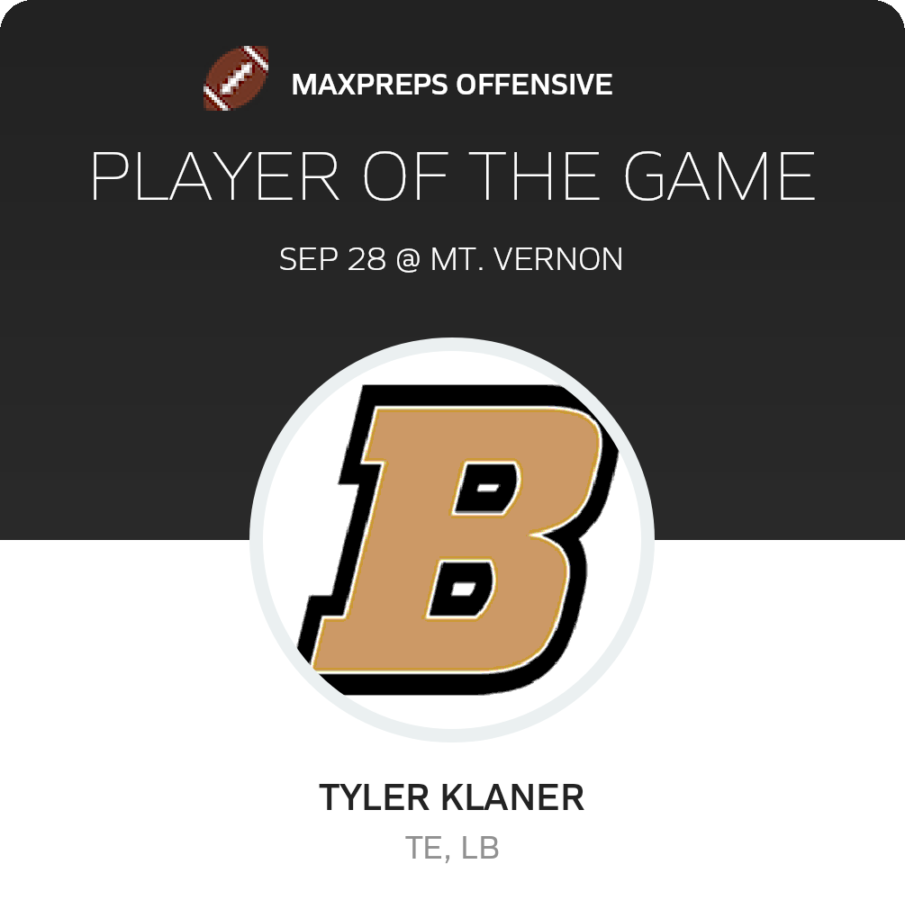 7:04 Touchdown Boonville 52 yd pass Grant Davis to Tyler Klaner kick good Trip Kelly
