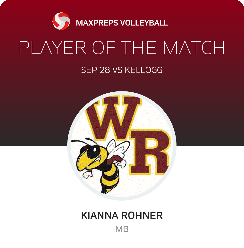 Congratulations to #12 Kianna Rohner for being selected the White River Volleyball Player of the Match.