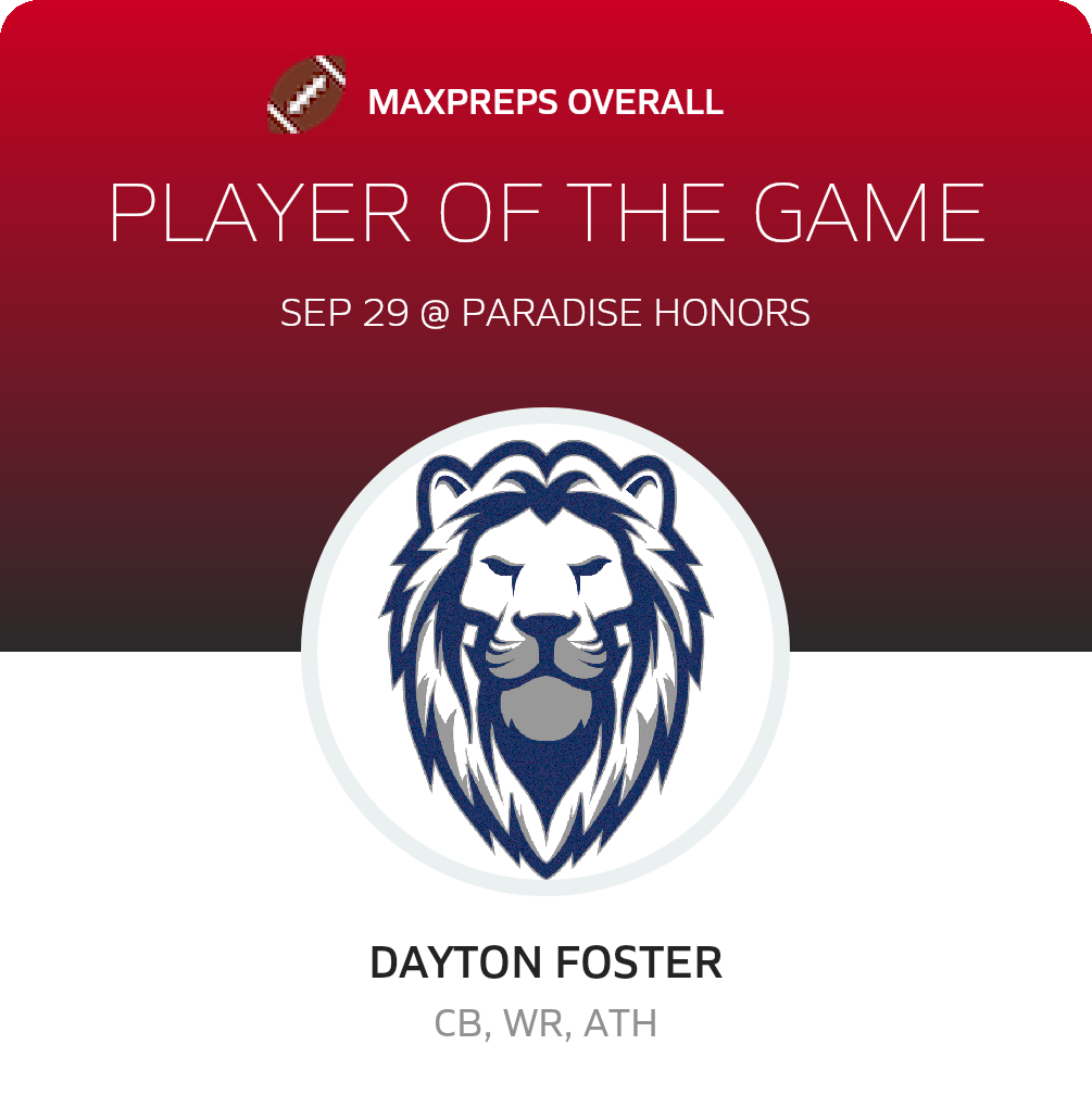 Congratulations to #8 Dayton Foster (overall), #3 Marquez Smith (offensive), #24 JJ Brutus (defensive) and #39 Sam Parks (special teams) for being selected the ALA - West Foothills Football Players of the Game.