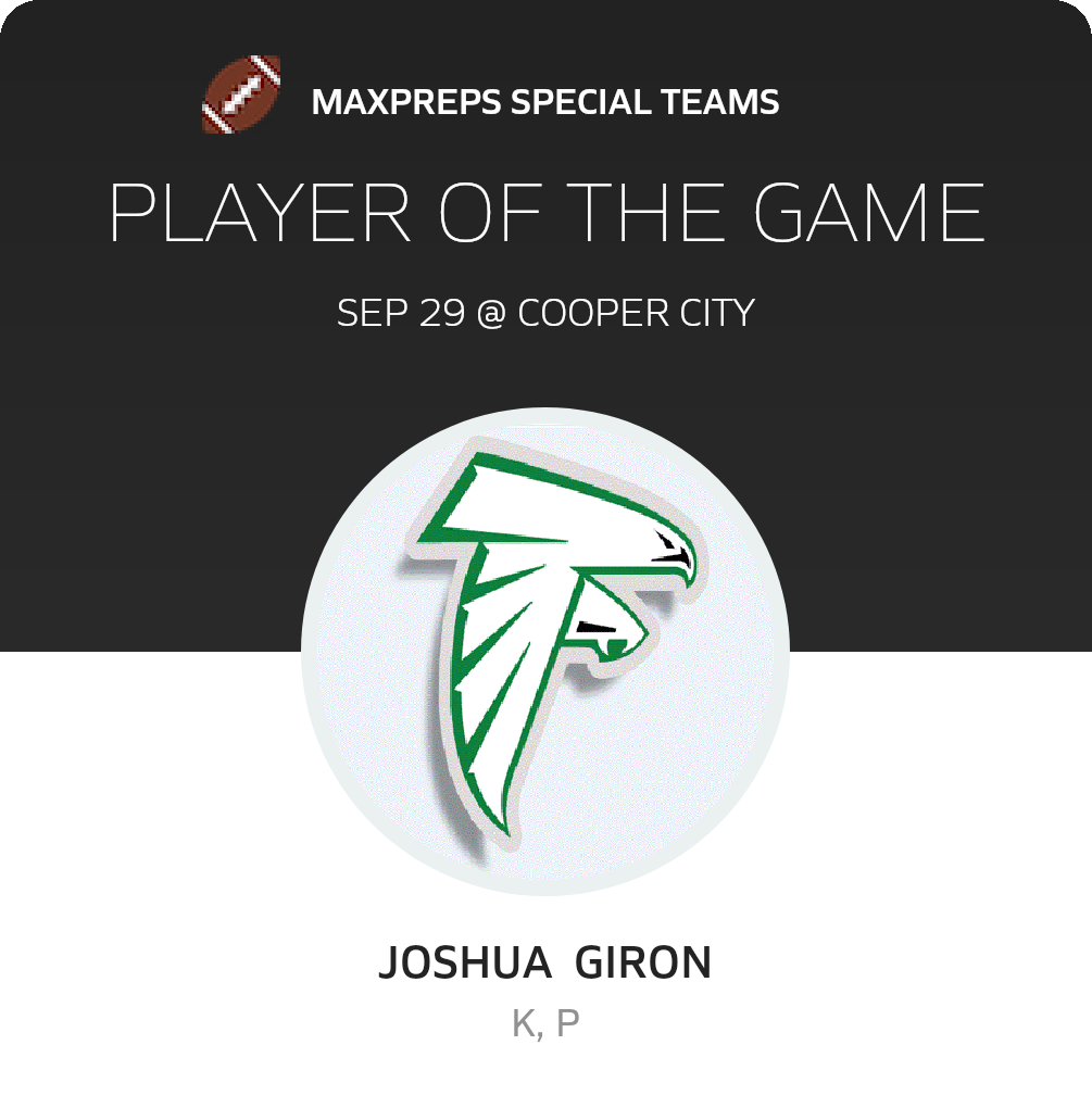September 29, 2023: Cooper City, FL 33328 The Flanagan Falcons football squad scored 40 points and restricted the host Cooper City Cowboys to 0 in the Falcons league victory on Friday.