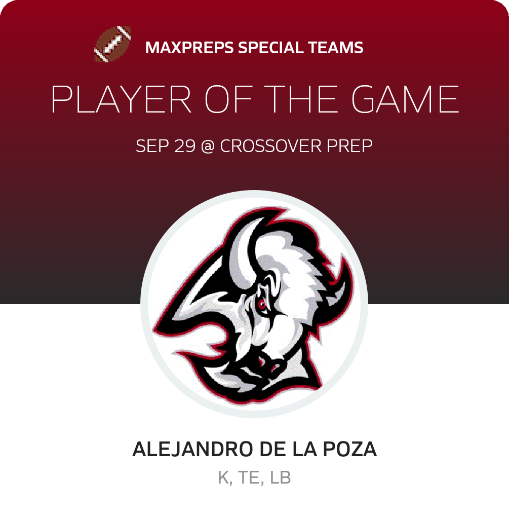 Congratulations to #24 Alejandro De La Poza (overall, defensive and special teams) and #10 Wade Keller (offensive) for being selected the Sunrise Christian Academy Football Players of the Game.