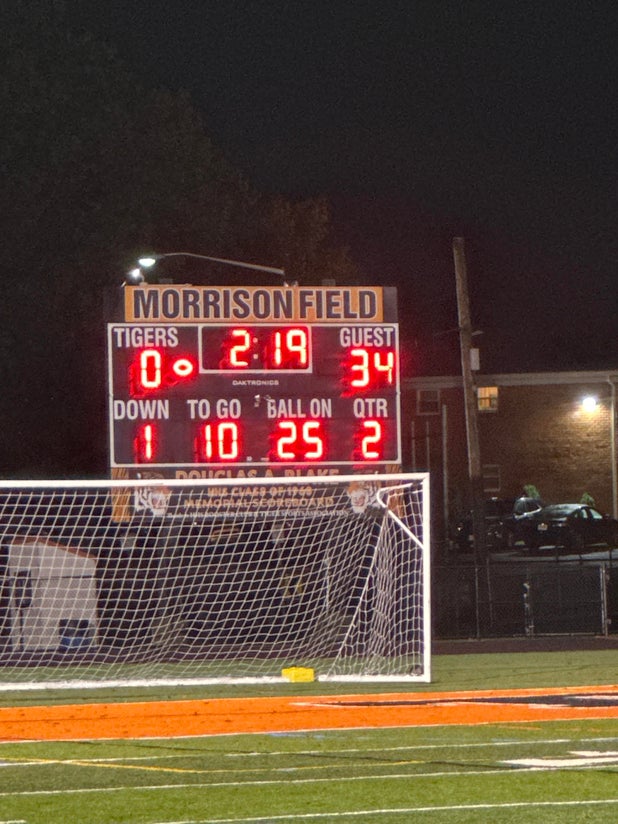September 29, 2023: Hackettstown, NJ 07840 The Sussex County Tech (Sparta, NJ) football routed the host Hackettstown Tigers (Hackettstown, NJ), 41-0 in Friday's league bout.