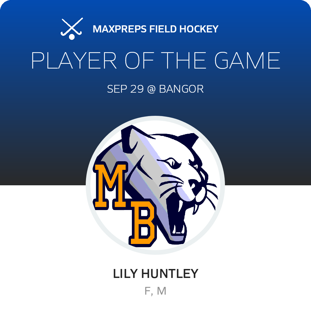 Congratulations to #10 Lily Huntley for being selected the Mt. Blue Field Hockey Player of the Game.