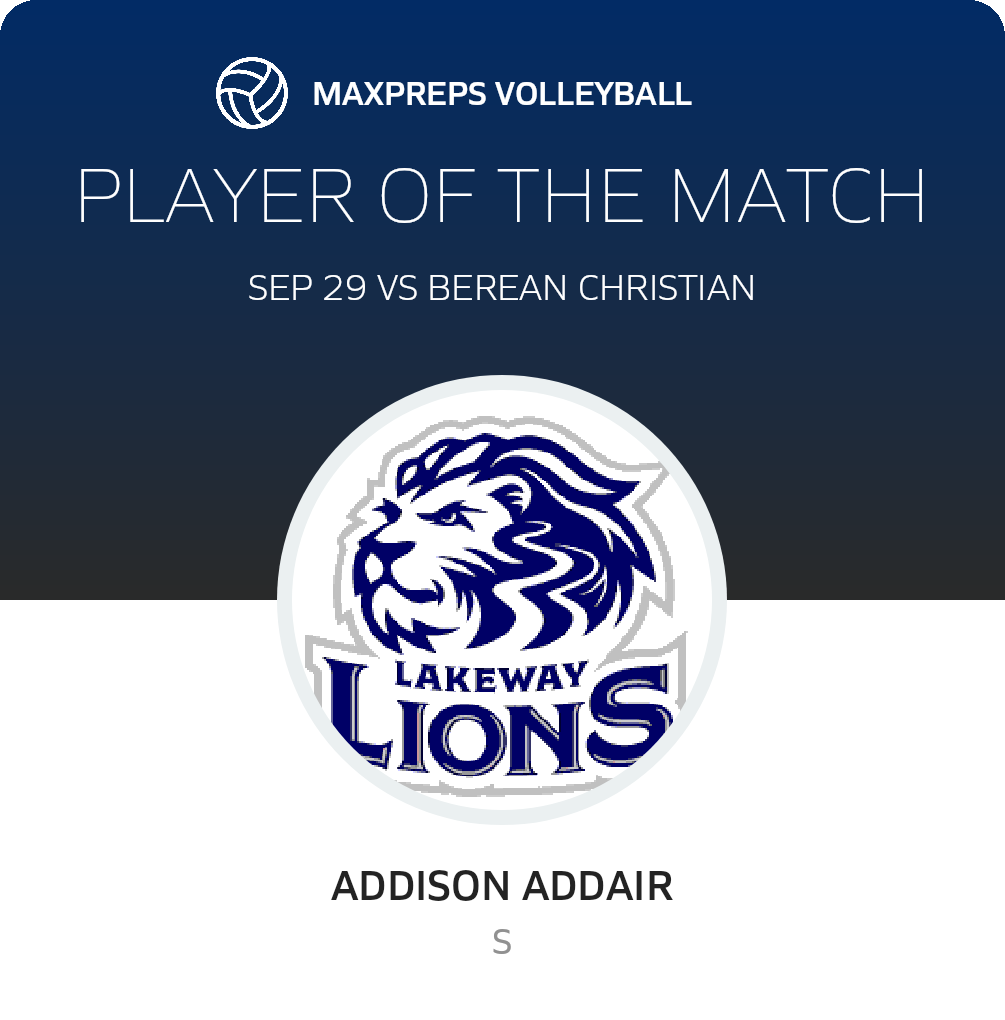 September 29, 2025: Morristown, TN 37816 The Lakeway Christian Academy Lions (Morristown, TN) volleyball knocked off the visiting Berean Christian  (Knoxville, TN), 3-0 in Monday's league bout.