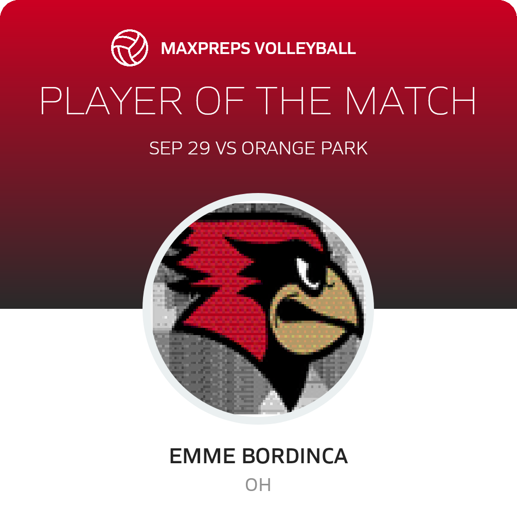 September 29, 2025: Jacksonville, FL 32210 The Bishop Snyder Cardinals (Jacksonville, FL) volleyball knocked off the visiting Orange Park Raiders (Orange Park, FL), 3-1 in Monday's non-league bout.