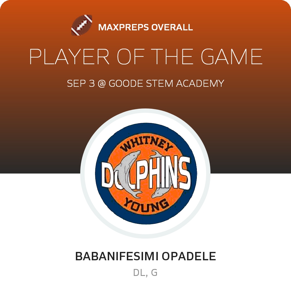 In their next game, the Dolphins clash with the Simeon Wolverines (Chicago, IL) in a non-league match, on Saturday, September 10. Whitney Young will attempt to move on its 1-1 season record. The Wolverines enter the match with a 2-0 record after their 35-31 non-league win over Bolingbrook (Bolingbrook, IL).