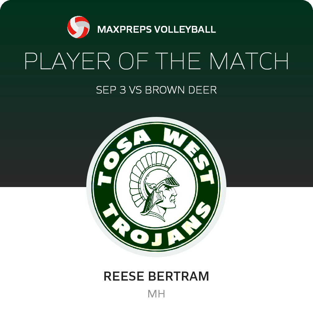 Congratulations to #14 Reese Bertram for being selected the Wauwatosa West Volleyball Player of the Match.