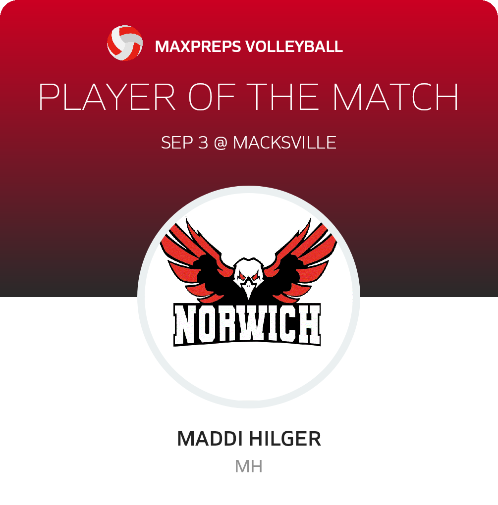 September 3, 2024: Macksville, KS 67557 The Norwich Eagles tipped the host Macksville Mustangs volleyball squad by a final score of 2-1 in Tuesday's non-league game.