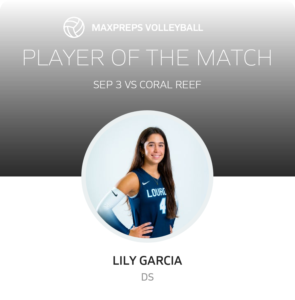 September 3, 2025: Miami, FL 33143 The Lourdes Academy (Miami, FL) volleyball knocked off the visiting Coral Reef Barracudas (Miami, FL), 3-0 in Wednesday's non-league bout.