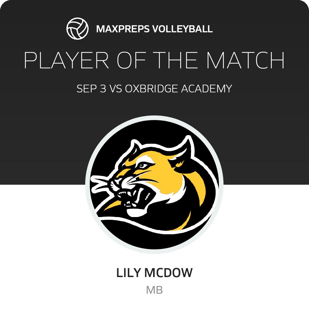 September 3, 2025: West Palm Beach, FL 33401 The Dreyfoos School of the Arts Jaguars (West Palm Beach, FL) volleyball overcame the visiting Oxbridge Academy ThunderWolves (West Palm Beach, FL), 3-0 in Wednesday's non-league match.