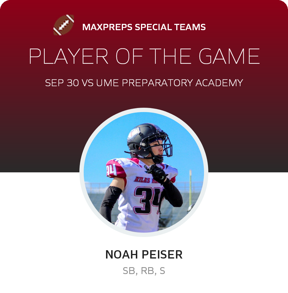 Congratulations to #4 Jacob Brown (overall), #10 R2 Cook (offensive), #42 Brian "BJ" Johnson (defensive) and #34 Noah Peiser (special teams) for being selected the Atlas HomeSchool Football Players of the Game.
