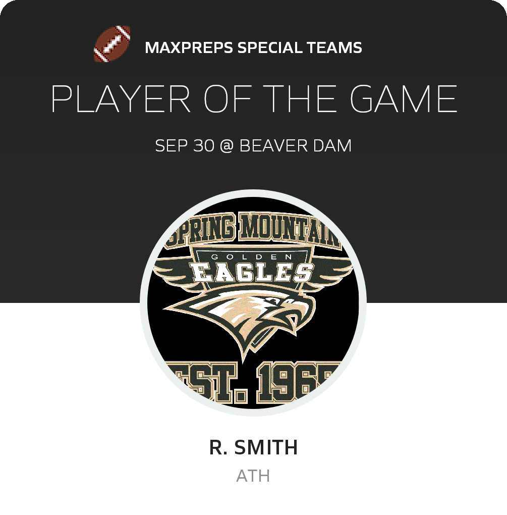 With the win, Spring Mountain upgrades its record to 4-2 on the season. The Eagles host Word of Life Christian Academy (Las Vegas, NV) to confront the in a 1A South (8 Man) outing on Friday, October 14. The go into the outing with a record of 0-1.