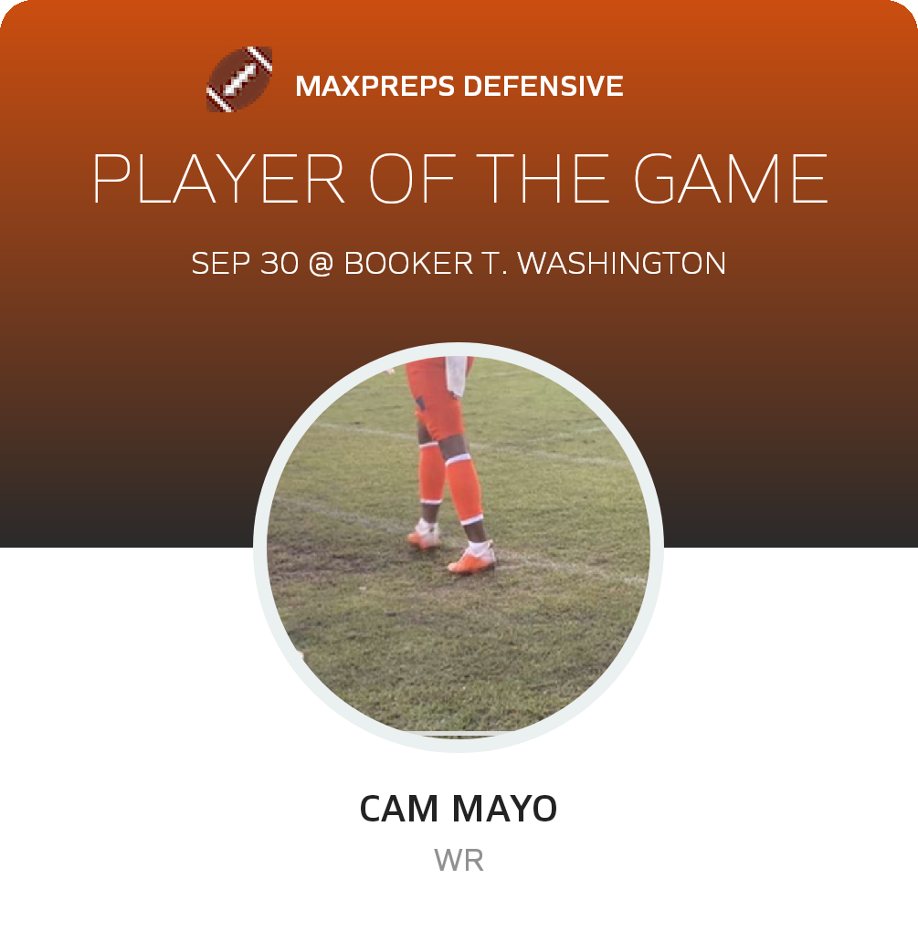 September 30, 2022: Pensacola, FL 32504 The Escambia Gators (Pensacola, FL) football edged the host Booker T. Washington Wildcats (Pensacola, FL), 18-15 in Friday's league bout.