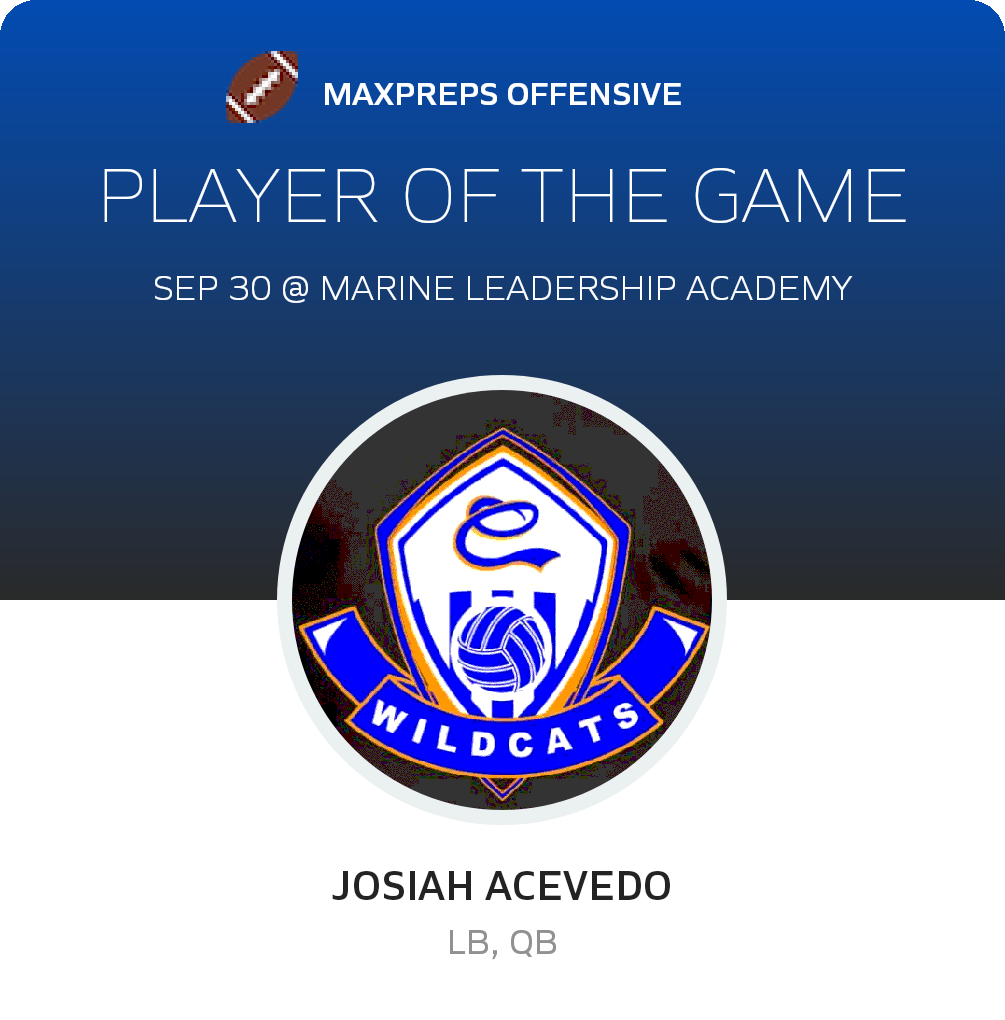 September 30, 2022: Chicago, IL 60647 The Clemente Wildcats topped the host Marine Leadership Academy Bulldogs football team by a count of 34-6 in Friday's league outing.