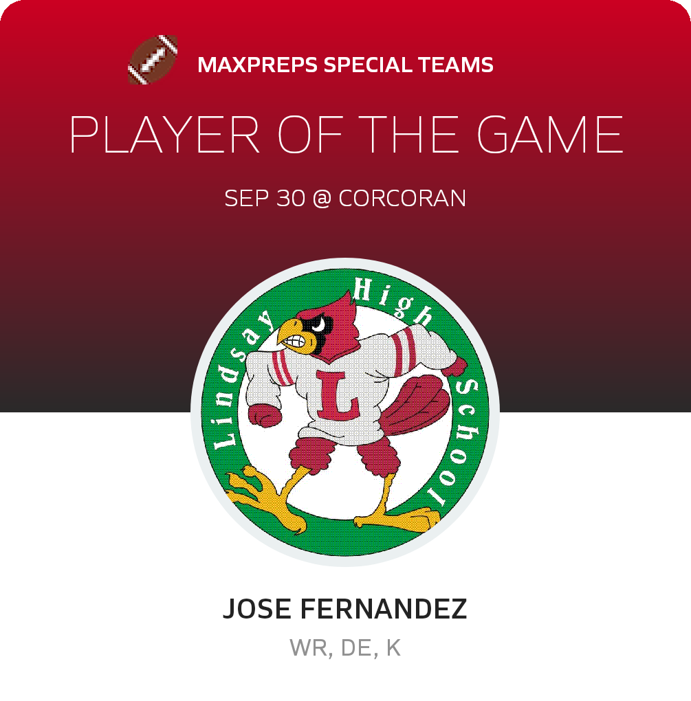September 30, 2022: Corcoran, CA 93212 The Corcoran Panthers football team (Corcoran, CA), was beaten 32-16 in Friday's league challenge with the visiting Lindsay Cardinals (Lindsay, CA)