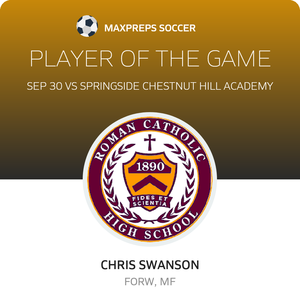 Congratulations to #1 Chris Swanson for being selected the Roman Catholic Soccer Player of the Match.