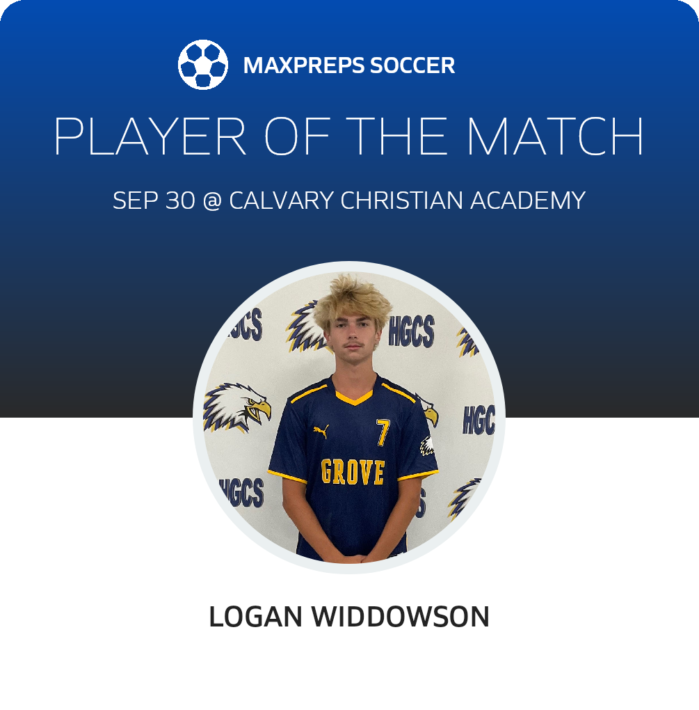 Congratulations to #7 Logan Widdowson for being selected the Holly Grove Christian Soccer Player of the Match.
