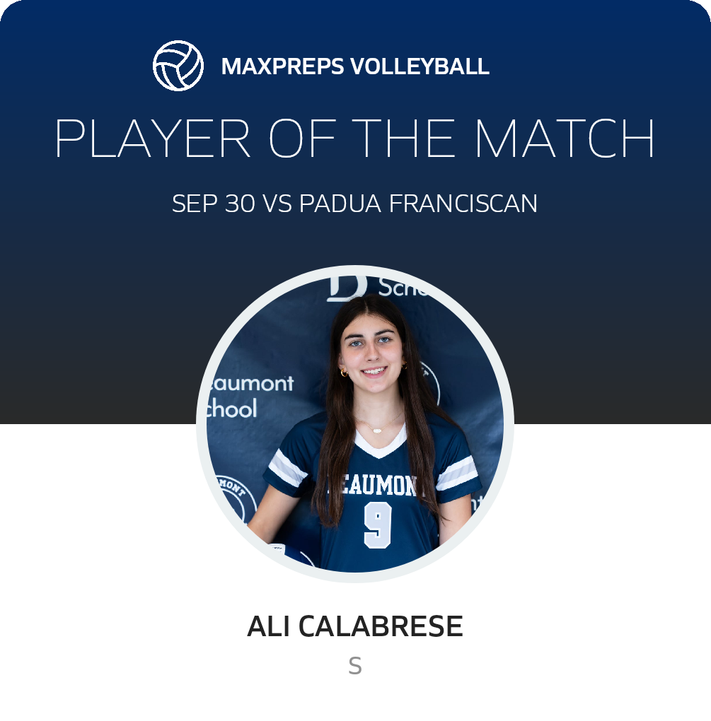 September 30, 2025: Cleveland Heights, OH 44118 In Tuesday's league challenge, the visiting Padua Franciscan Bruins volleyball team scored a 3-0 victory over the Beaumont School Blue Streaks.