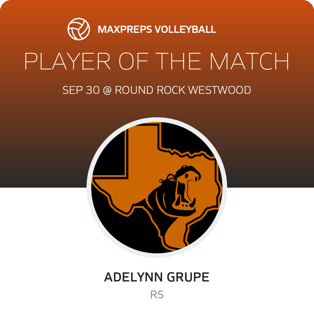 September 30, 2025: Austin, TX 78750 In Tuesday's league bout, the Round Rock Westwood Warriors (Austin, TX) volleyball team knocked off the visiting Hutto Hippos (Hutto, TX), by a margin of 3-1.