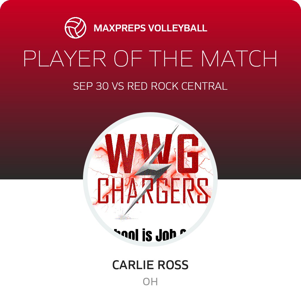 September 30, 2025: Westbrook, MN 56183 In Tuesday's league match, the Westbrook-Walnut Grove Chargers (Westbrook, MN) volleyball squad prevailed the visiting Red Rock Central Falcons (Lamberton, MN), by a final score of 3-0.