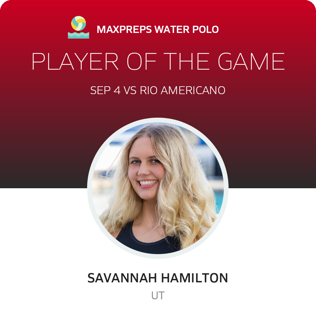 Congratulations to #5 Savannah Hamilton for being selected the St. Francis Girls JV Water Polo Player of the Game.