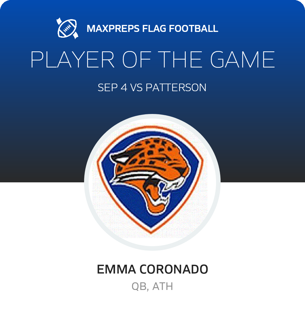 September 4, 2025: Tracy, CA 95377 Kimball Jaguars (Tracy, CA) followers went home pleased Thursday as they saw their flag football team gain a win over the visiting Patterson Tigers (Patterson, CA), 41-14 in a non-league battle.