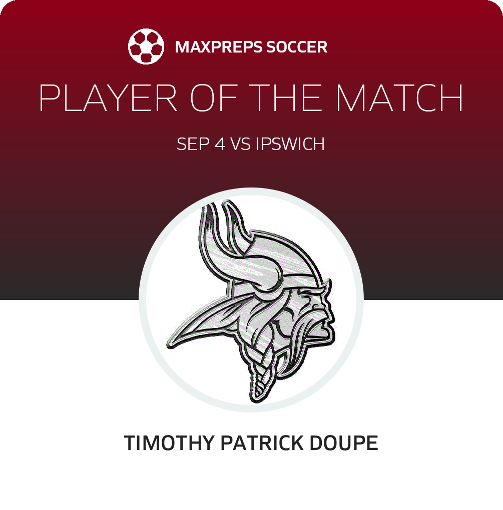 Congratulations to #20 Timothy Patrick Doupe for being selected the Rockport Soccer Player of the Match.