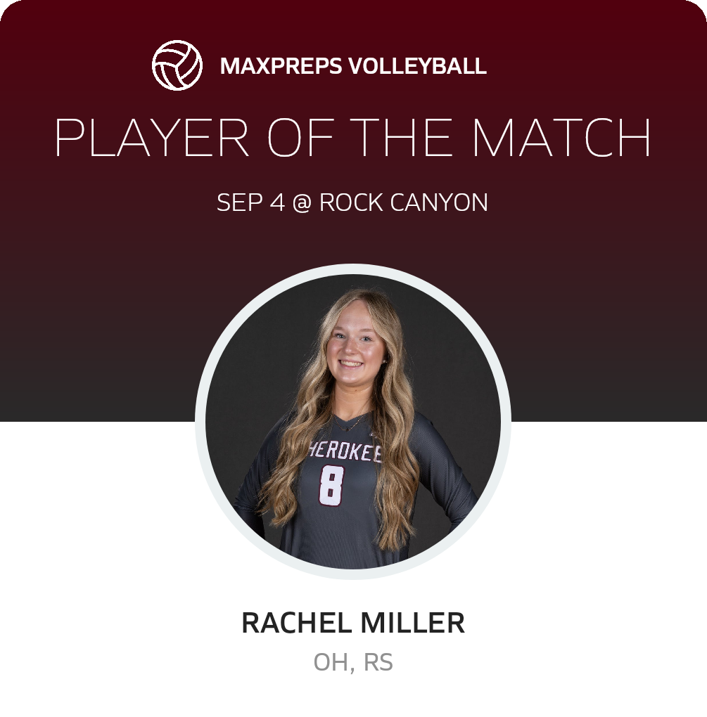 Congratulations to #8 Rachel Miller for being selected the Cherokee Trail Volleyball Player of the Match.
