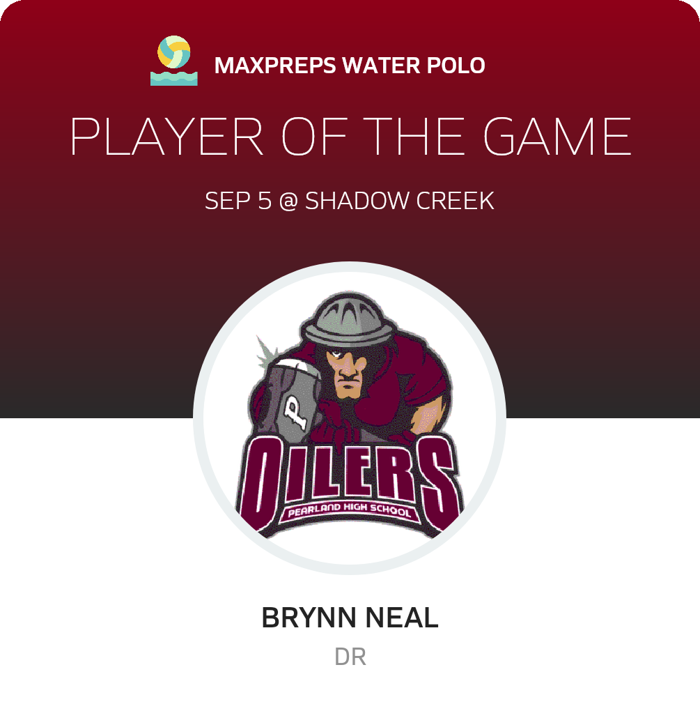 Congratulations to #14 Brynn Neal for being selected the Pearland Girls Water Polo Player of the Game.