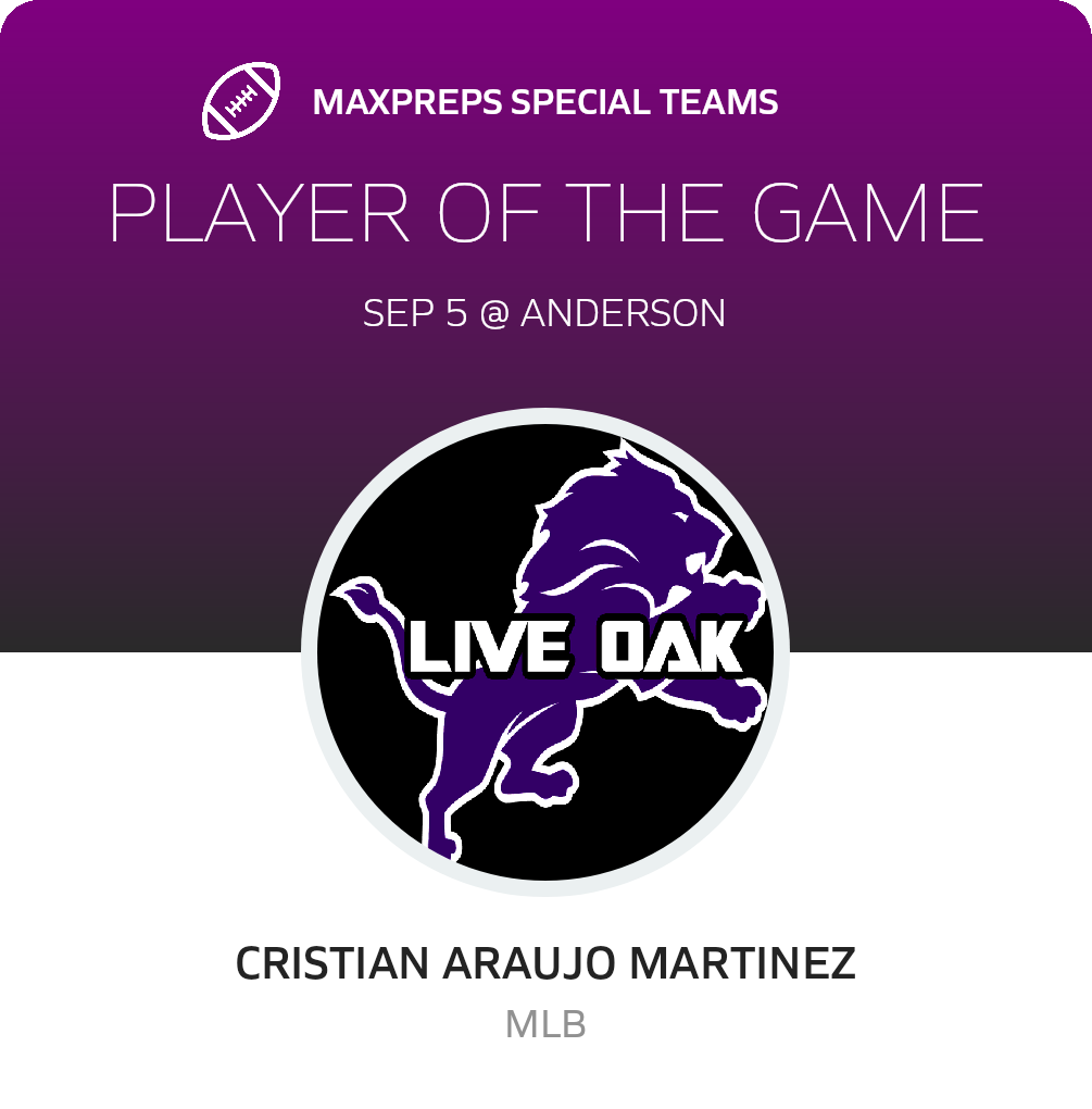 September 5, 2025: Anderson, CA 96007 In Friday's non-league game, the Anderson Cubs (Anderson, CA) football team edged the visiting Live Oak Lions (Live Oak, CA), by a score of 28-21.