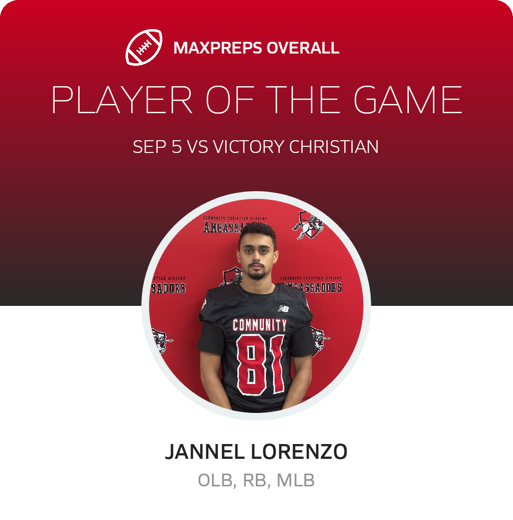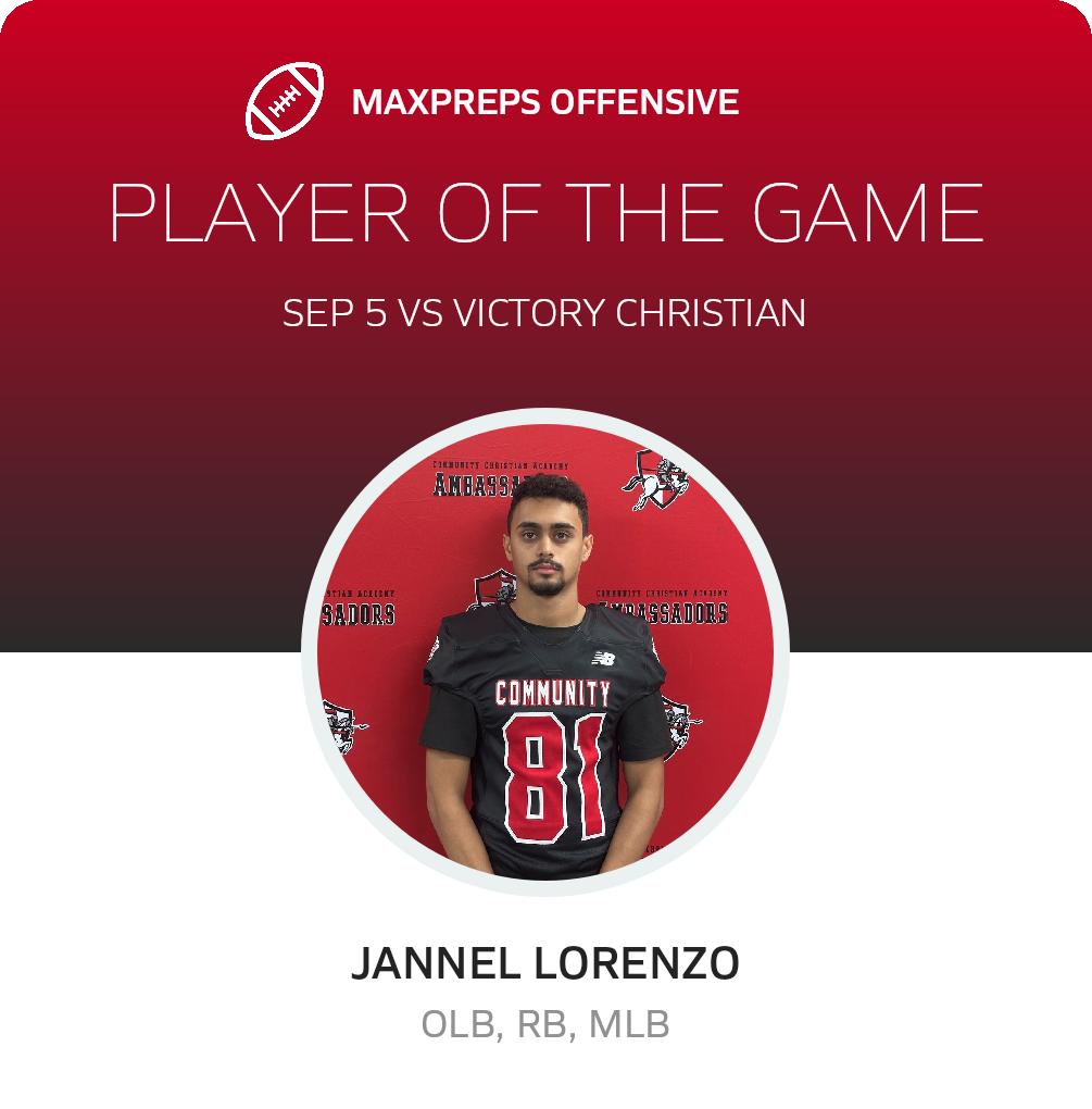 September 5, 2025: Martinez, GA 30907 In Friday's league game, the Community Christian Academy Ambassadors (Martinez, GA) football team were victorious over the visiting Victory Christian Vikings (North Augusta, SC), by a score of 36-8.