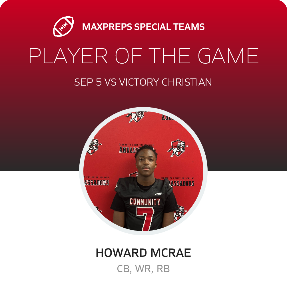 The Ambassadors now sport a 2-0 record. They take the field next when they host Monsignor Donovan Catholic for a non-league outing on Friday, September 12. Community Christian Academy will clash with a Rams squad coming off a 41-14 league loss to Westminster Schools of Augusta (Augusta, GA). The Rams record now stands at 0-1.
