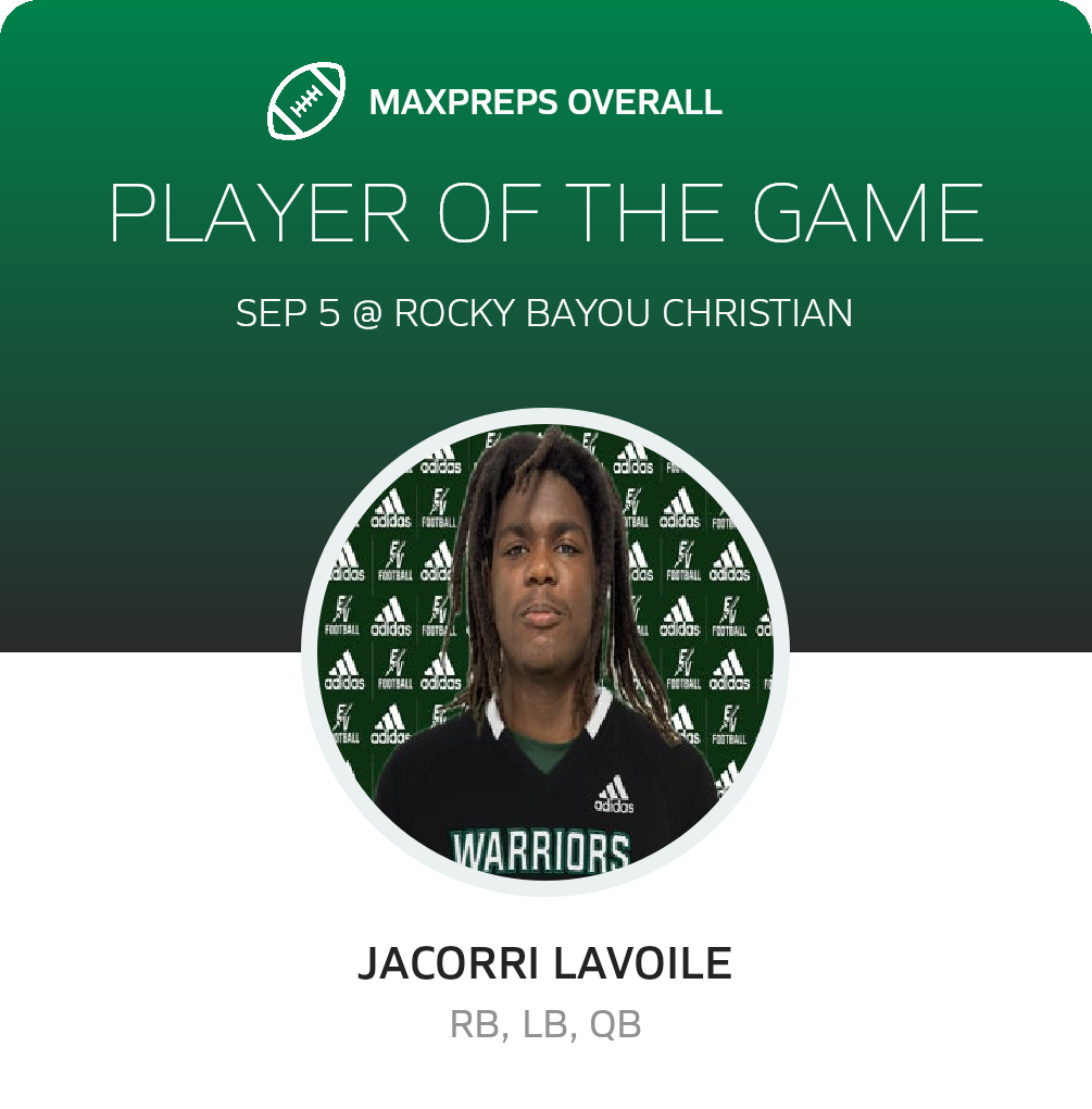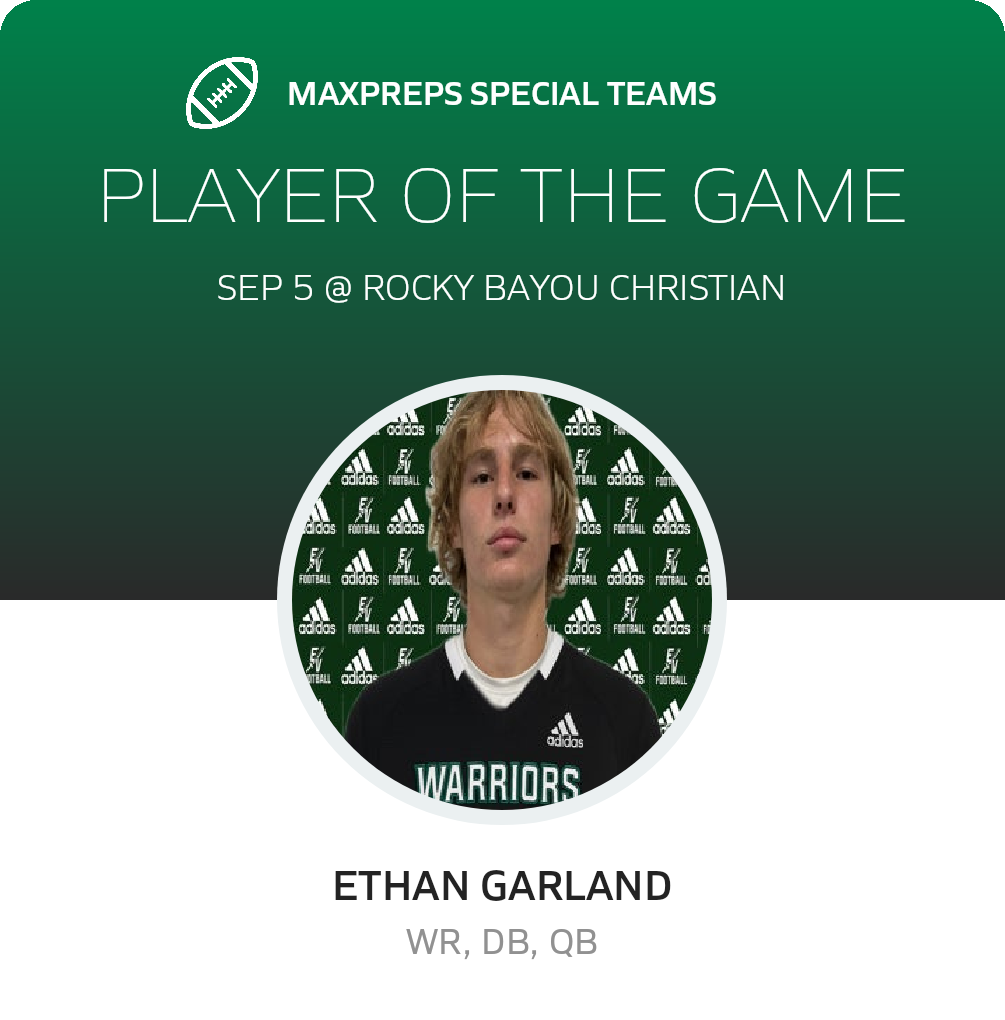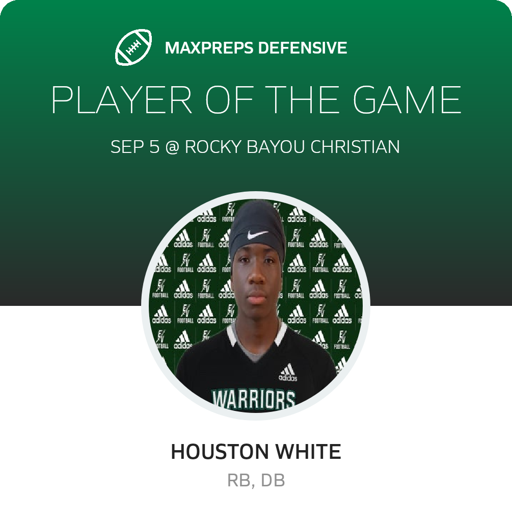 The Knights now own a 0-3 record. They play next when they travel to Aucilla Christian for a Sunshine State - North Florida bout on Friday, September 12. Rocky Bayou Christian will encounter a Warriors team coming off a 21-20 non-league loss to Trenton (Trenton, FL). The Warriors record now stands at 2-1.