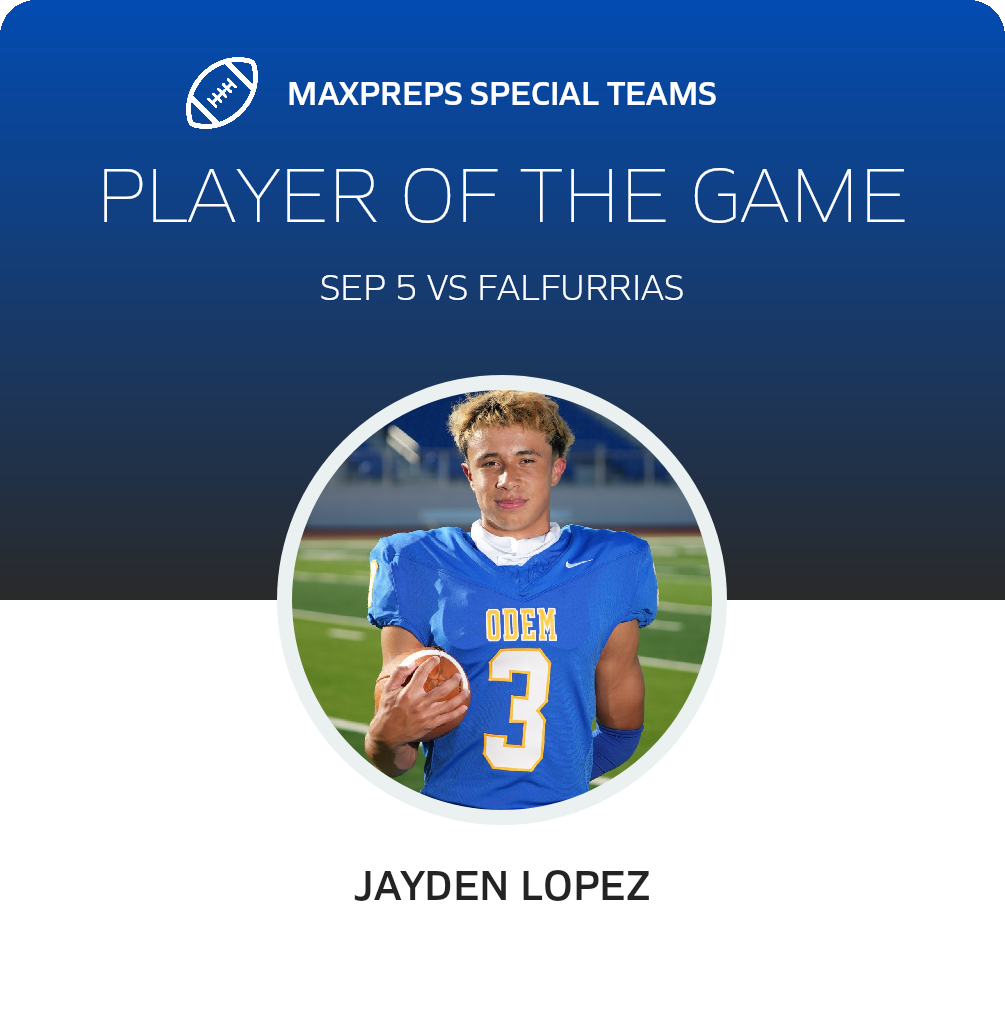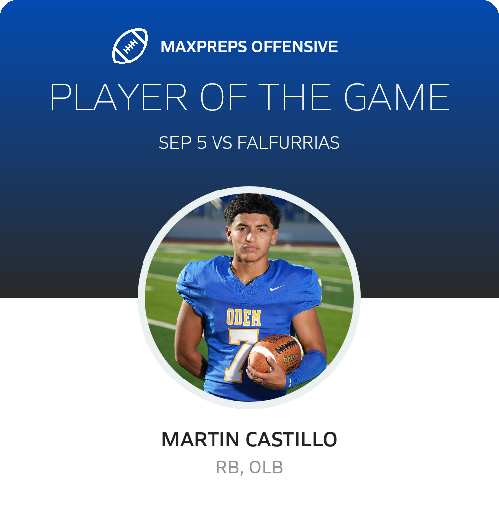 September 5, 2025: Odem, TX 78370 The Falfurrias Fightin' Jerseys football squad (Falfurrias, TX), was trounced 50-0 in Friday's non-league contest with the host Odem Owls (Odem, TX)