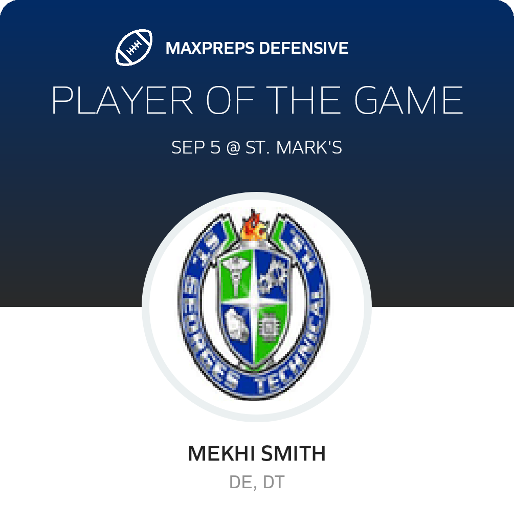 September 5, 2025: Wilmington, DE 19808 The St. Georges Tech Hawks football squad scored 35 points and limited the host St. Mark's Spartans to 20 in the Hawks non-league triumph on Friday.