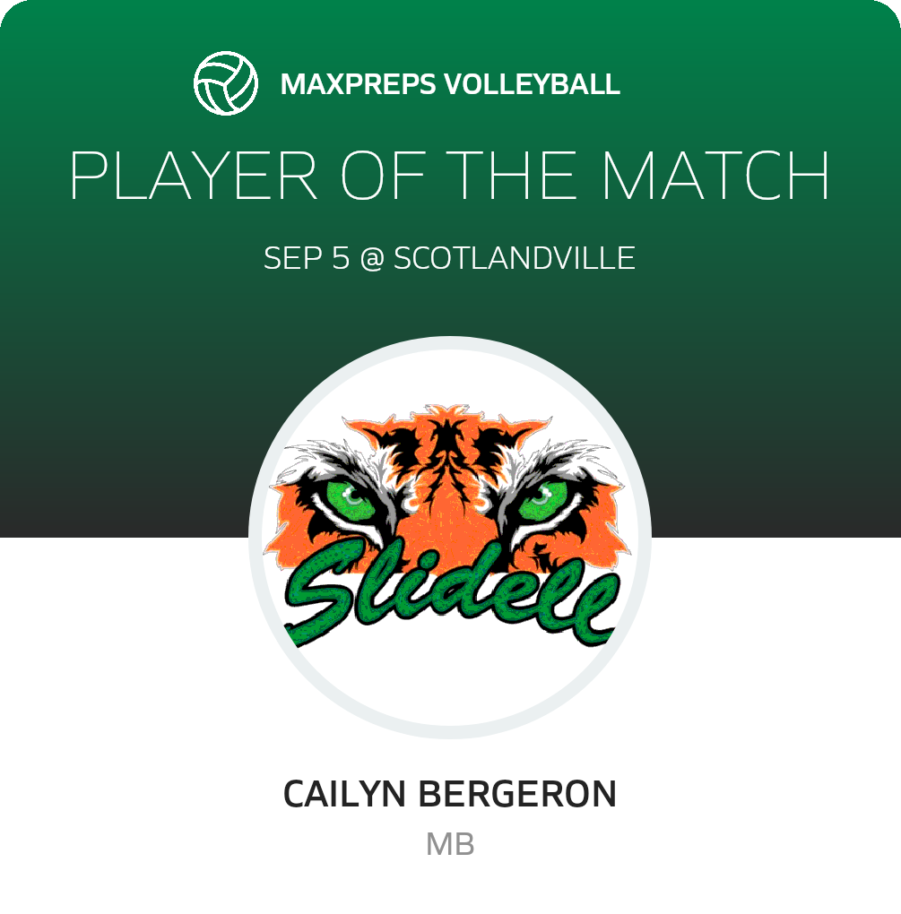 Congratulations to #14 Cailyn Bergeron for being selected the Slidell Volleyball Player of the Match.