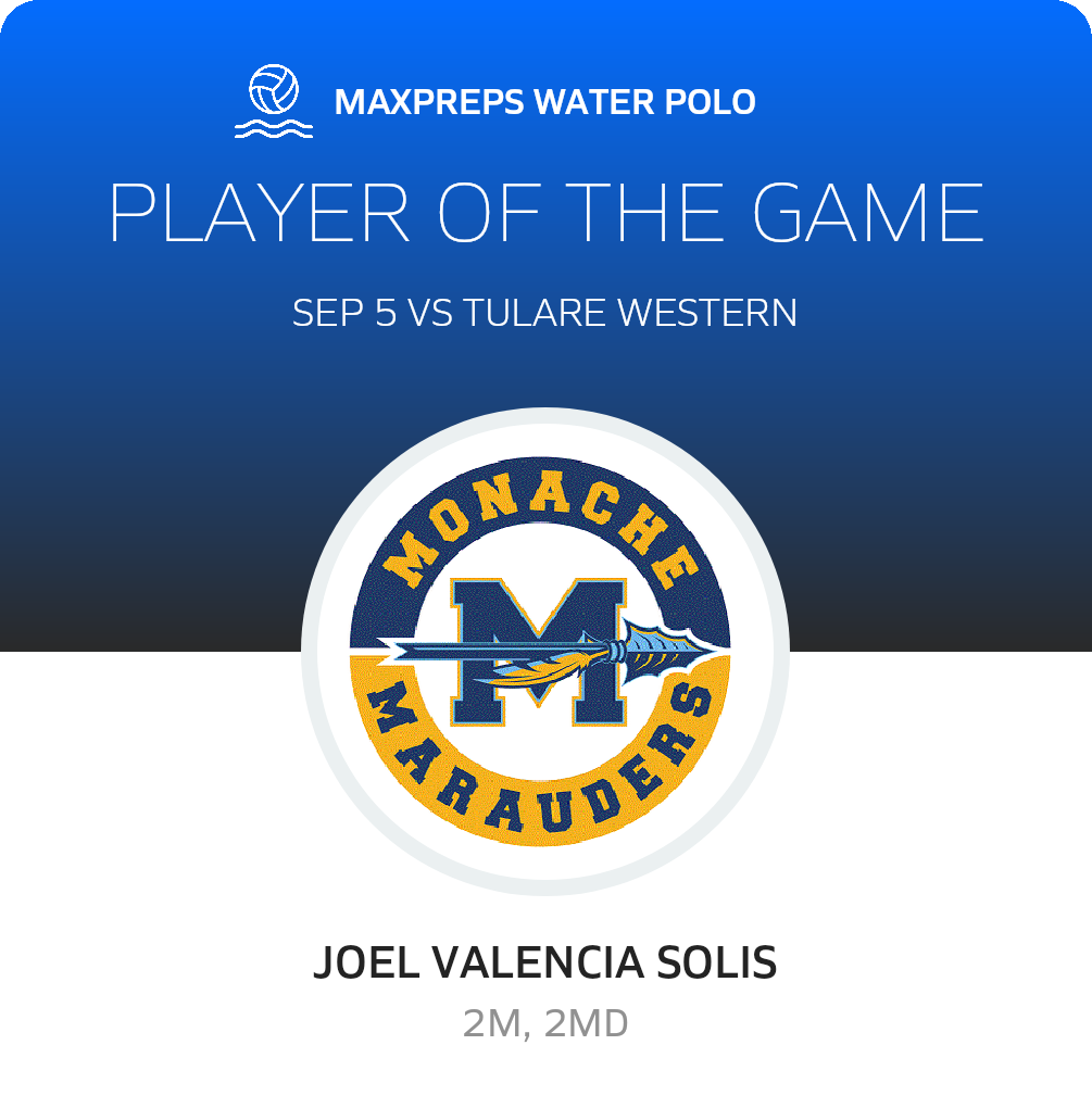 Congratulations to Joel Valencia Solis for being selected the Monache Water Polo Player of the Game.