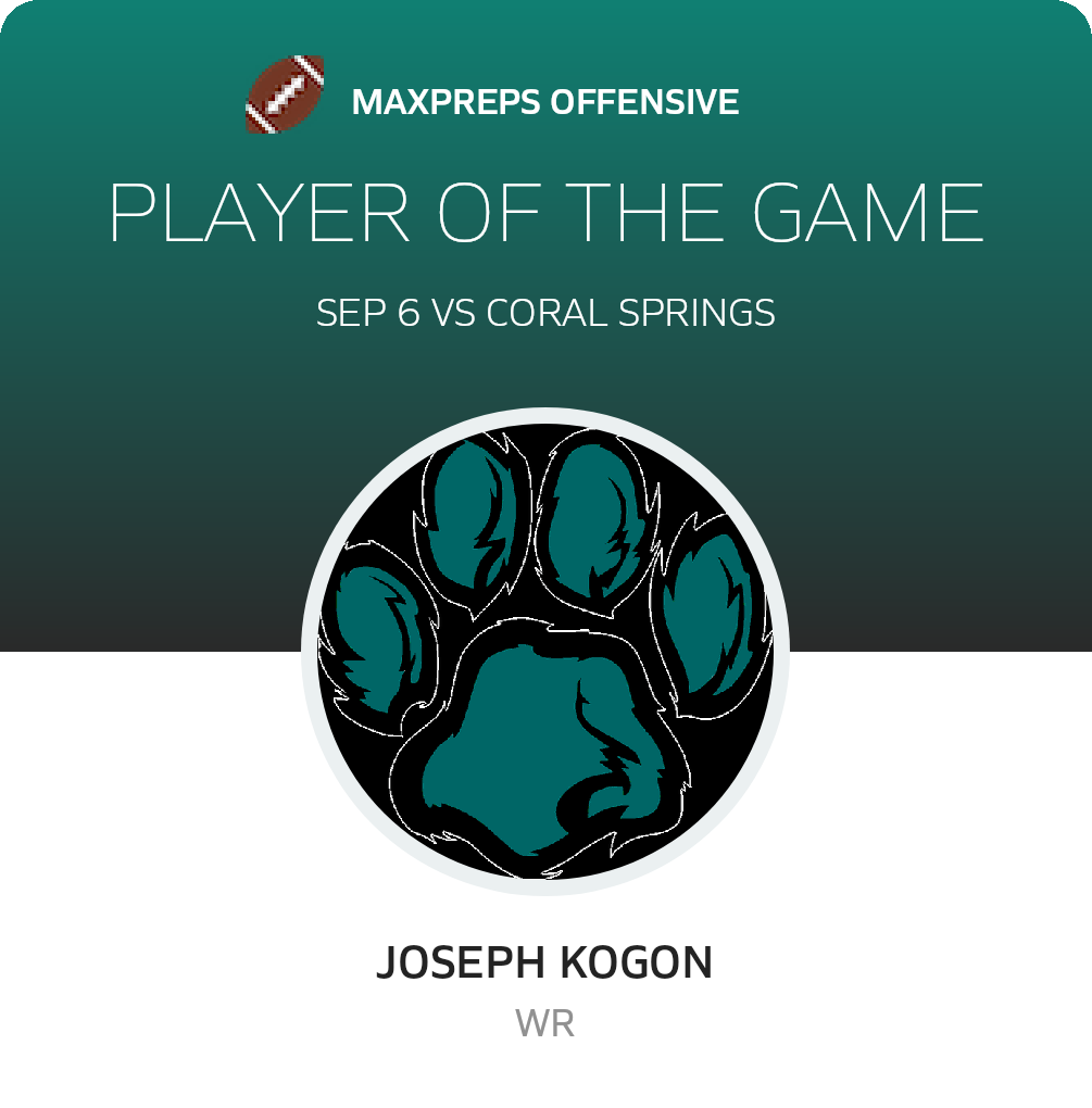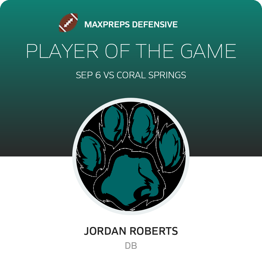 September 6, 2024: Coral Springs, FL 33065 Coral Glades Jaguars (Coral Springs, FL) followers went home pleased Friday as they saw their football team gain a win over the visiting Coral Springs Colts (Coral Springs, FL), 35-6 in a non-league battle.