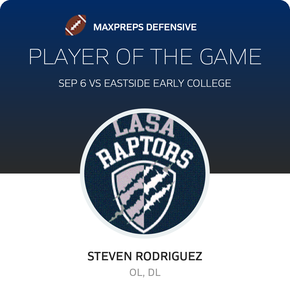 In their next game, the Raptors battle the Northeast Early College Raiders (Austin, TX) in a non-league game, on Thursday, September 12. Liberal Arts & Science Academy - Austin will attempt to better on its 1-1 season record. The Raiders enter the game with a 0-2 record after their 19-16 non-league loss to Navarro (Austin, TX).