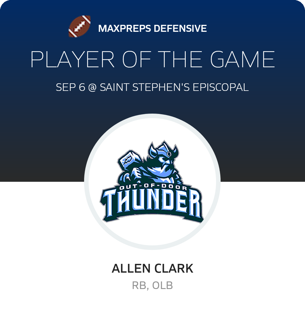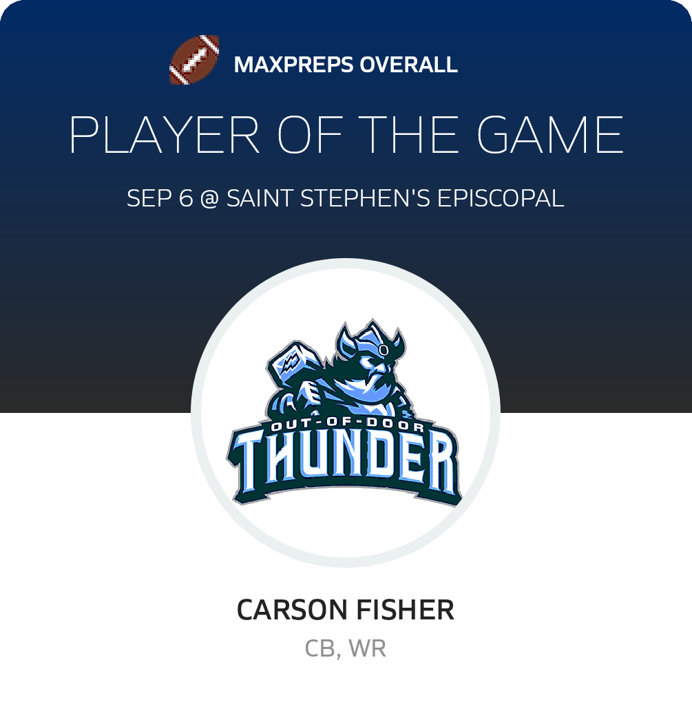 September 6, 2024: Bradenton, FL 34209 Out-of-Door Academy Thunder (Sarasota, FL) followers went home pleased Friday as they saw their football team gain a win over the host Saint Stephen's Episcopal Falcons (Bradenton, FL), 12-2 in a non-league battle.