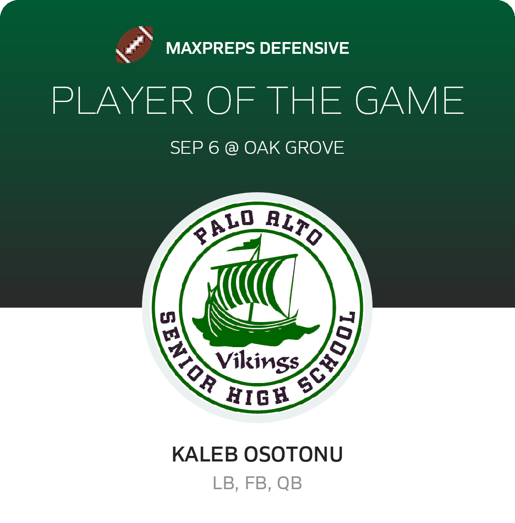 September 6, 2024: San Jose, CA 95123 In Friday's non-league match, the visiting Palo Alto Vikings football squad scored a decisive 45-6 victory over the Oak Grove Eagles.