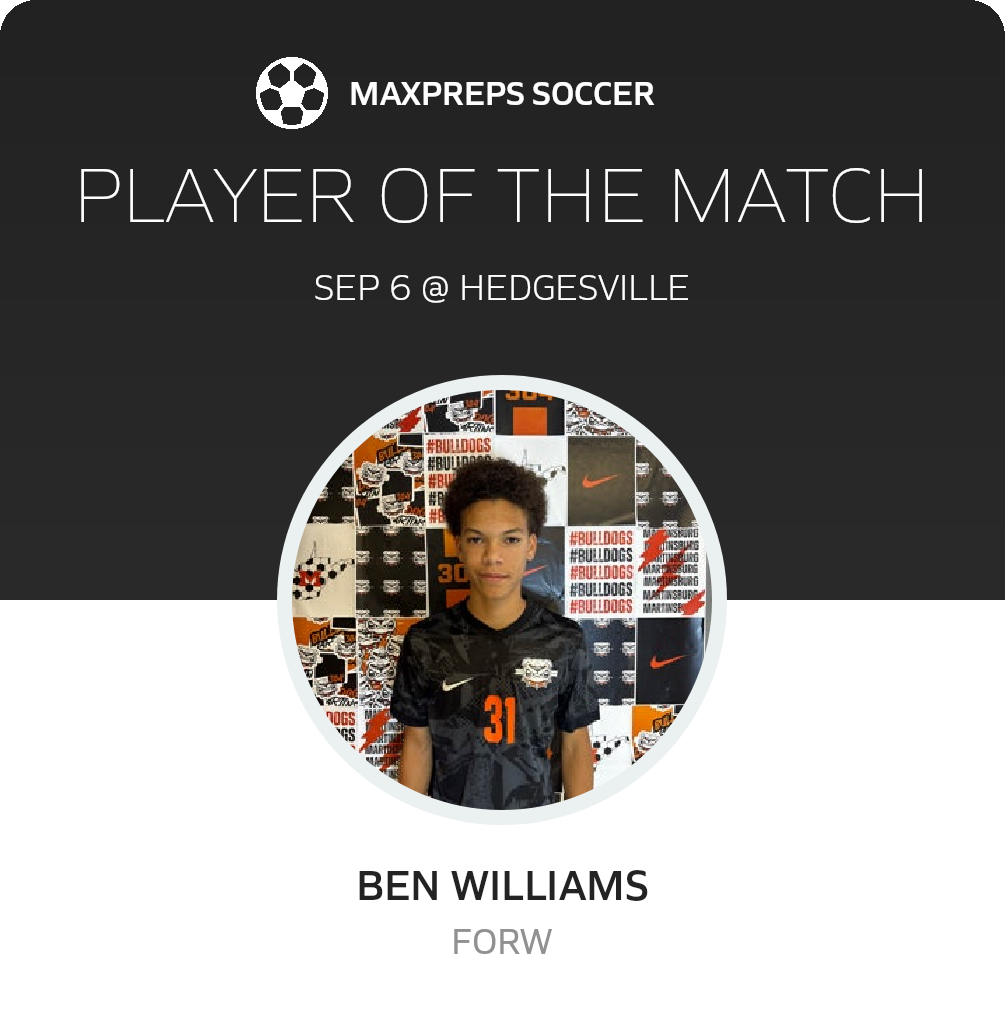 September 6, 2025: Hedgesville, WV 25427 In Saturday's league contest, the Martinsburg Bulldogs (Martinsburg, WV) soccer team edged the host Hedgesville Eagles (Hedgesville, WV), by a margin of 1-0.