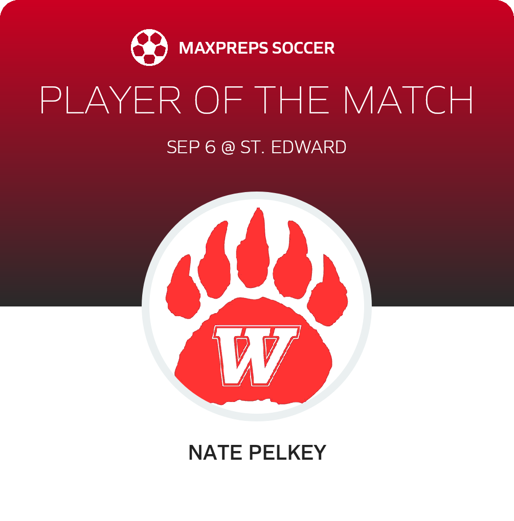 Congratulations to #21 Nate Pelkey for being selected the Wadsworth Soccer Player of the Match.