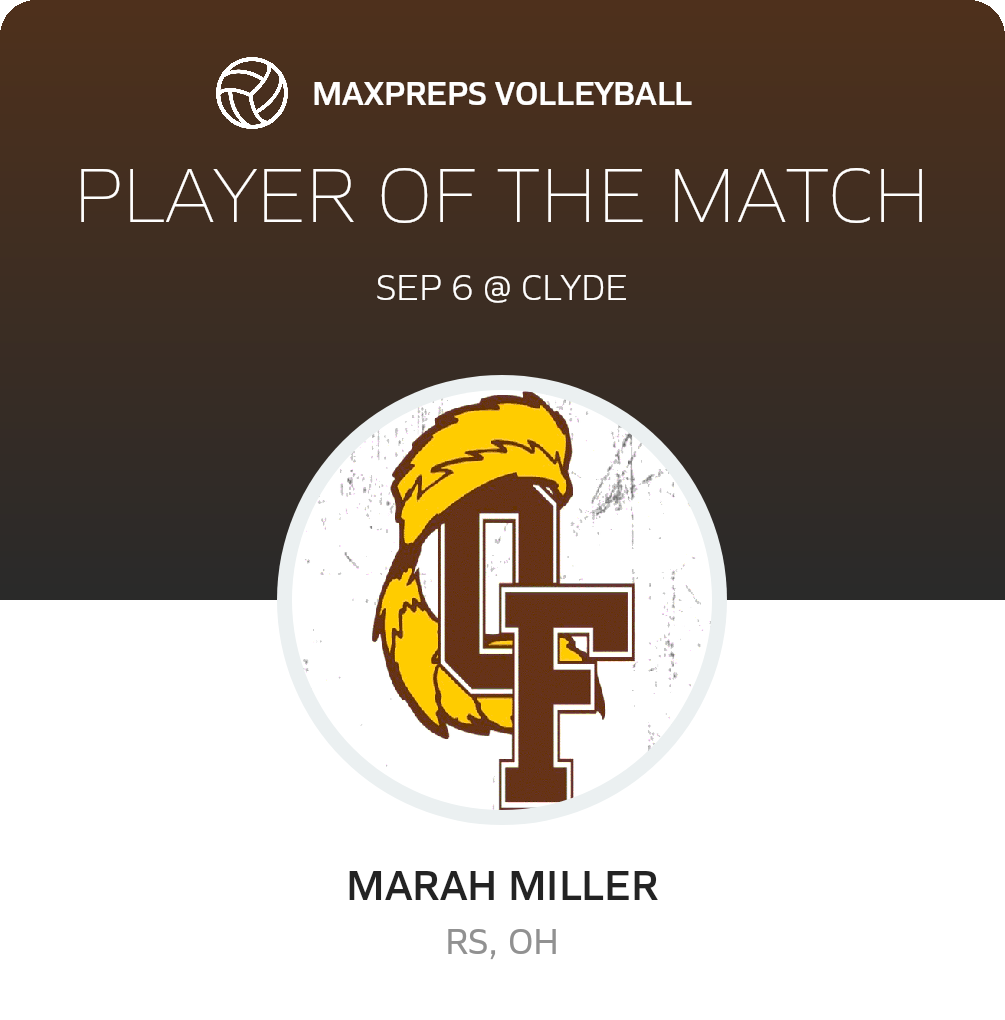 September 6, 2025: Clyde, OH 43410 In Saturday's non-league match, the Old Fort Stockaders (Old Fort, OH) volleyball squad got by the host Clyde Fliers (Clyde, OH), by a score of 3-2.