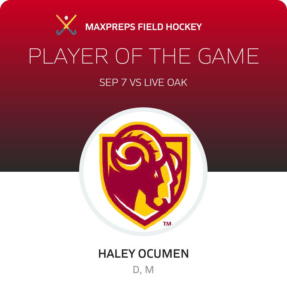 Congratulations to #9 Haley Ocumen for being selected the Willow Glen Field Hockey Player of the Game.