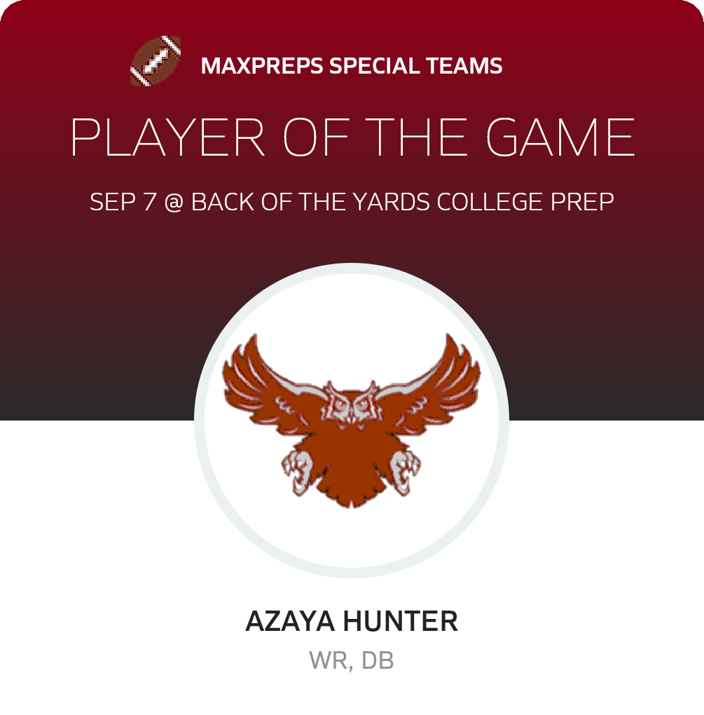 In their next game, the Bobcats clash with the Tilden/Air Force Academy (Chicago, IL) in a Chicago Public - Blue Central match, on Saturday, September 16. Back of the Yards College Prep will attempt to move on its 2-1 season record.