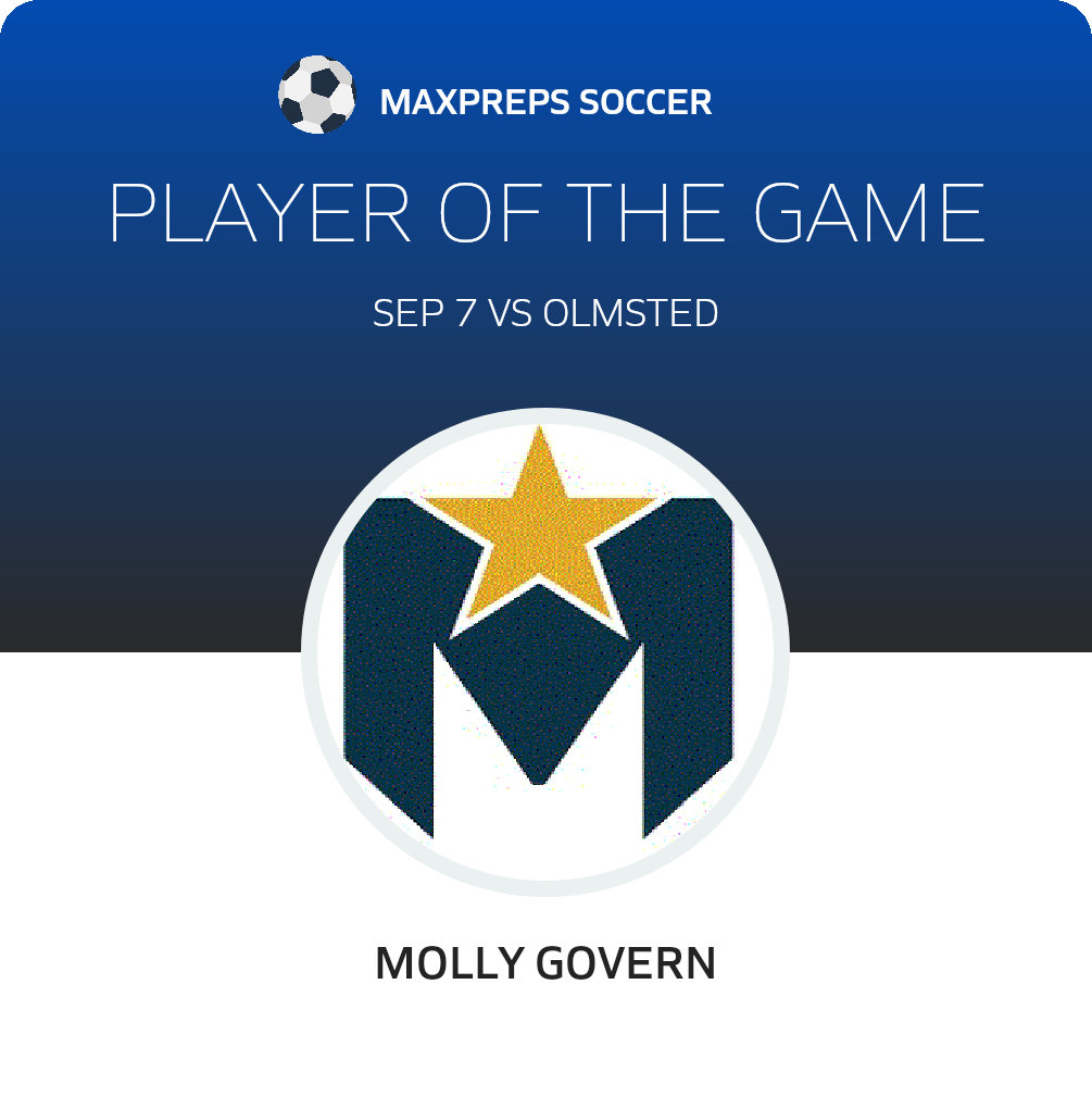 Congratulations to #1 Molly Govern for being selected the Mount Mercy Academy Girls Soccer Player of the Match.