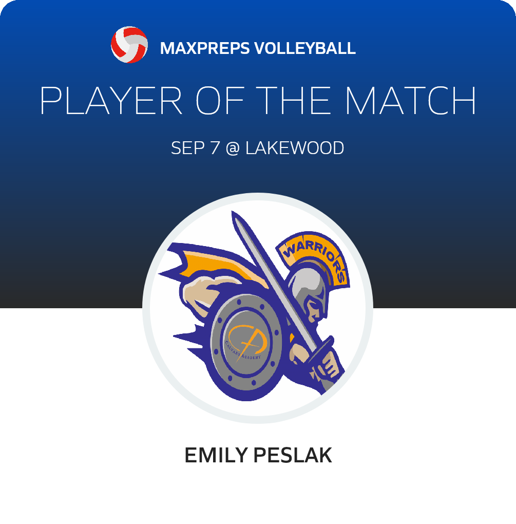 Congratulations to #21 Emily Peslak for being selected the Calvary Academy Volleyball Player of the Match.