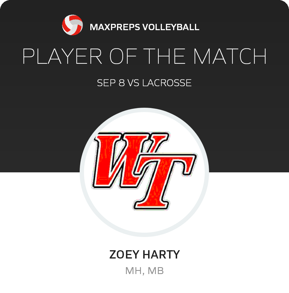 Congratulations to #5 Zoey Harty for being selected the Washington Township JV Volleyball Player of the Match.