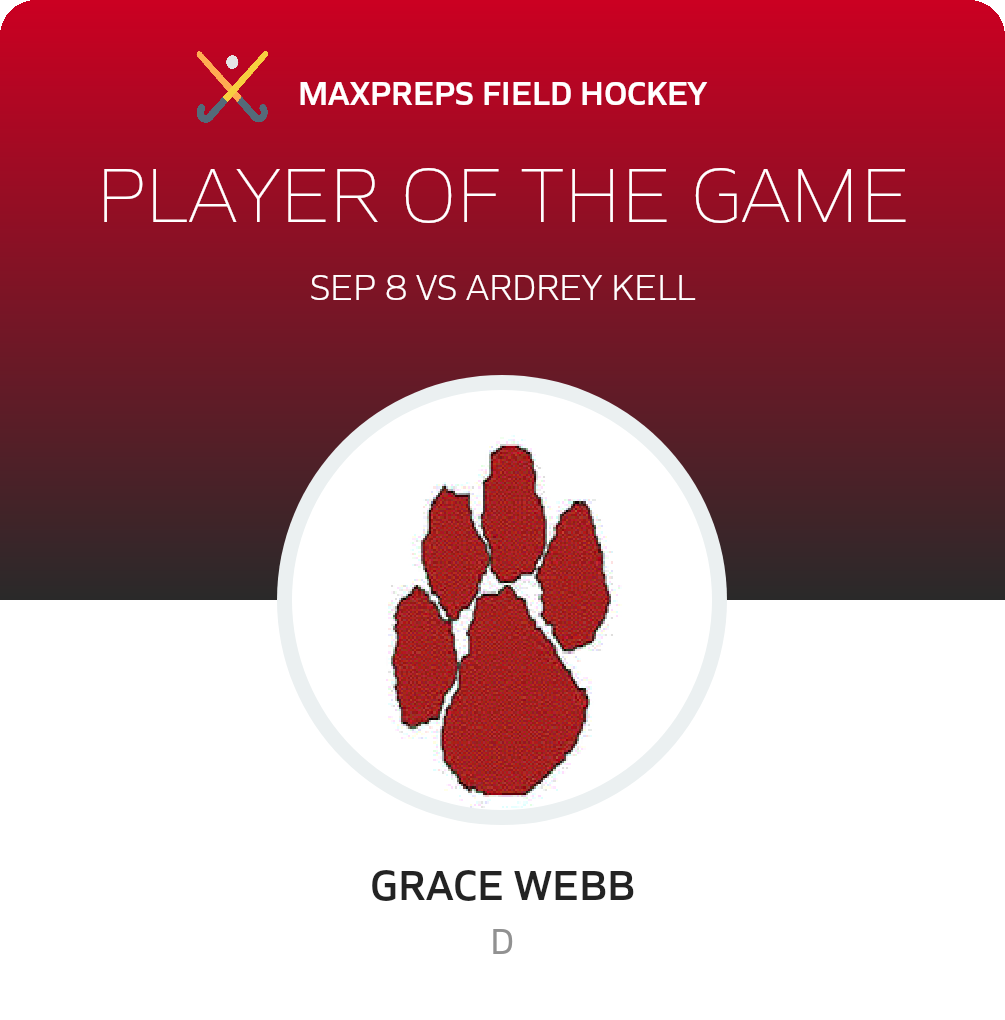 Congratulations to #9 Grace Webb for being selected the Asheville Field Hockey Player of the Game.